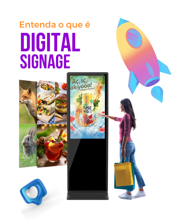 Digital Signage é uma tecnologia de comunicação visual que utiliza telas digitais para exibir conteúdos informativos e publicitários. Beneficie seu negócio ao atrair clientes, modernizar a experiência do consumidor e aumentar o engajamento com sua marca.