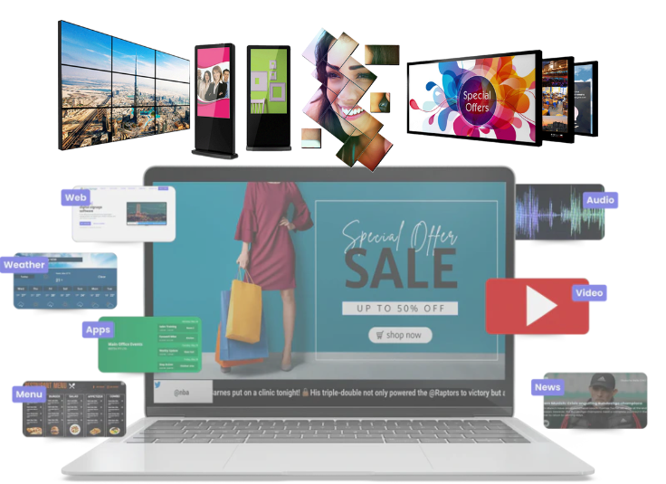 A AdScreen oferece uma experiência completa em sinalização digital, permitindo-lhe transmitir conteúdos dinâmicos e relevantes de forma automática e ininterrupta.